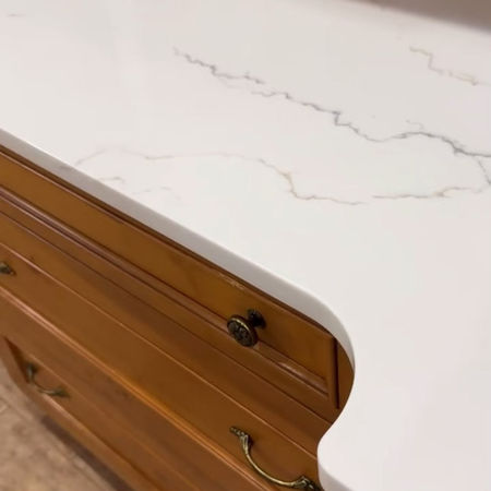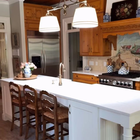 We wanted something that would work with the existing tumbled marble backsplash. I researched and landed on Inspiration from the Brilliance Collection with Spectrum Quartz. I find myself just standing and staring! We are so in love with our kitchen…..again! We built in 2004, and updated counters in 2023! It’s amazing how paint and new quartz counters can totally transform a space without a complete demo."